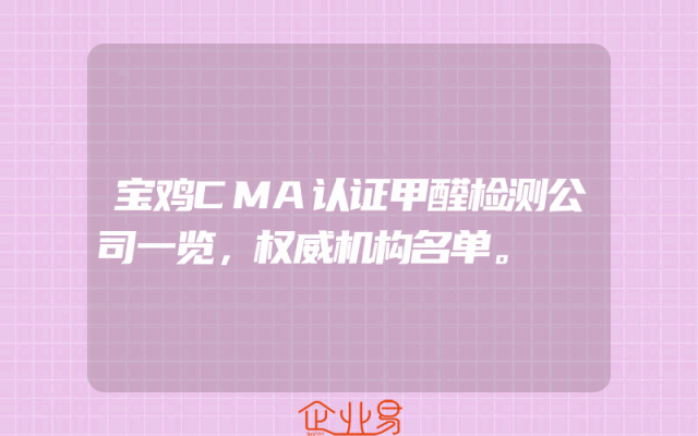 - 宝鸡CMA认证甲醛检测公司一览,权威机构名单。