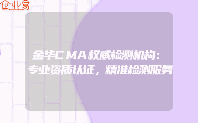 - 金华CMA权威检测机构:专业资质认证,精准检测服务