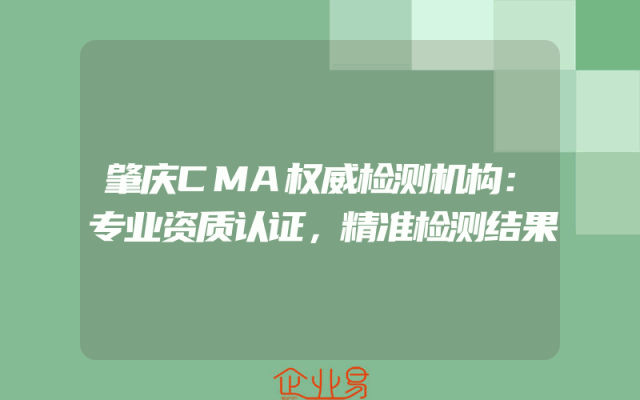 - 肇庆CMA权威检测机构:专业资质认证,精准检测结果
