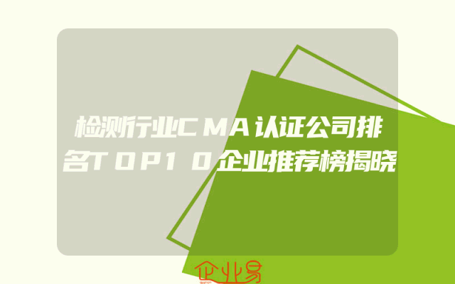 - 检测行业CMA认证公司排名TOP10企业推荐榜揭晓