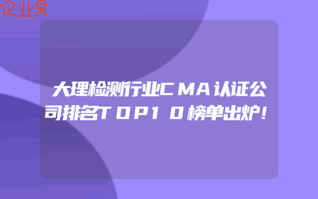 - 大理CMA认证公司排名榜单,权威发布正规企业排名!