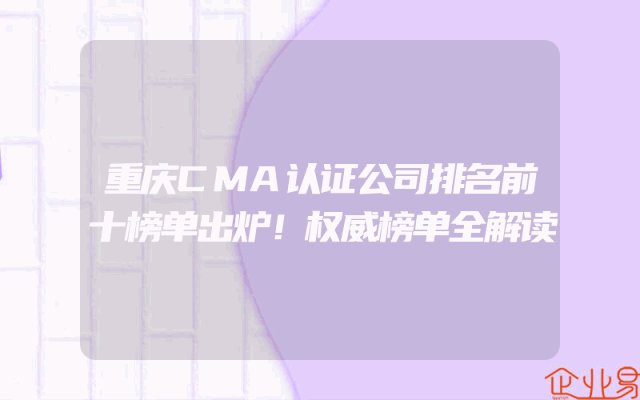 - 重庆CMA认证公司排名前十榜单出炉!权威榜单全解读