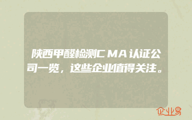 - 陕西甲醛检测CMA认证公司一览,这些企业值得关注。