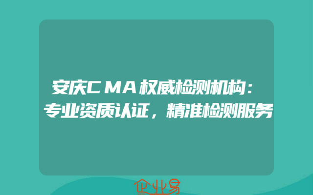 - 安庆CMA权威检测机构:专业资质认证,精准检测服务