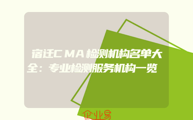 - 宿迁CMA检测机构名单大全:专业检测服务机构一览