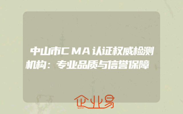 - 中山市CMA认证权威检测机构:专业品质与信誉保障
