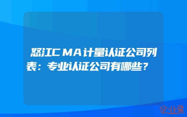 - 怒江CMA计量认证公司列表:专业认证公司有哪些?