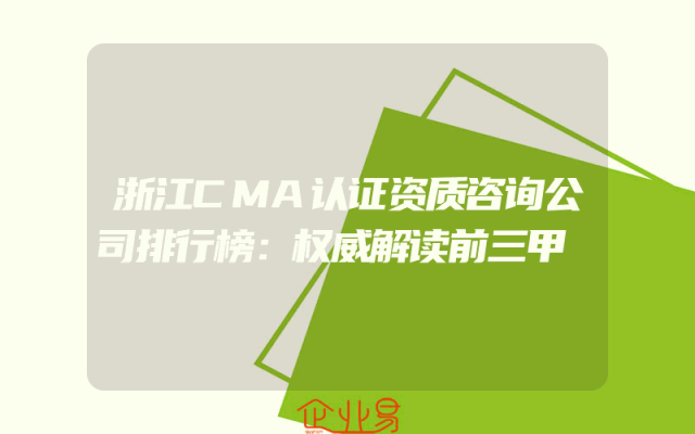 - 浙江CMA认证资质咨询公司排行榜:权威解读前三甲