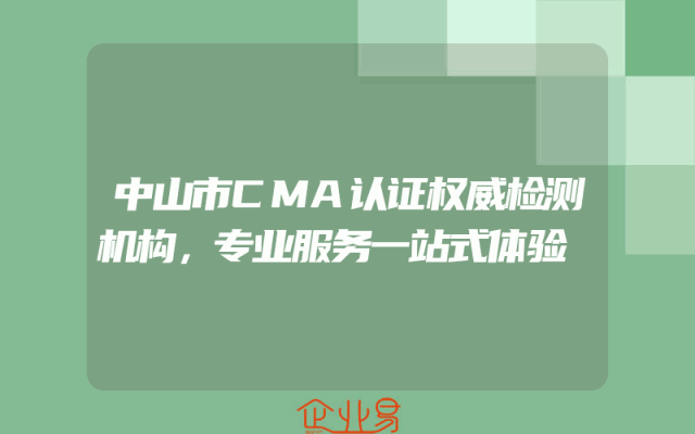 - 中山市CMA认证权威检测机构,专业服务一站式体验