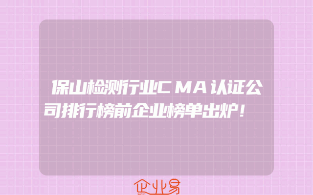 - 保山检测行业CMA认证公司排行榜前企业榜单出炉!
