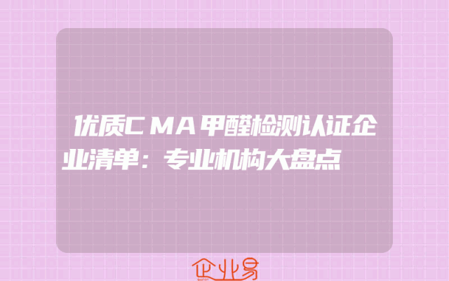 - 优质CMA甲醛检测认证企业清单:专业机构大盘点