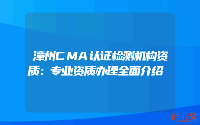 - 漳州CMA认证检测机构资质:专业资质办理全面介绍