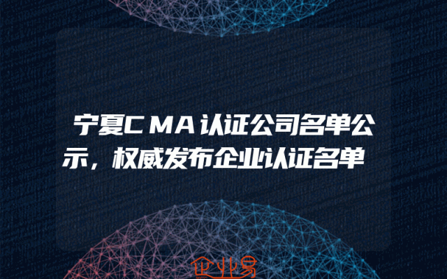 - 宁夏CMA认证公司名单公示,权威发布企业认证名单