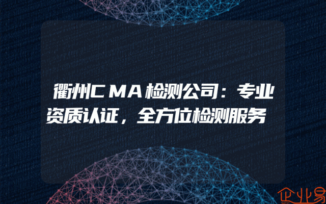 - 衢州CMA检测公司:专业资质认证,全方位检测服务