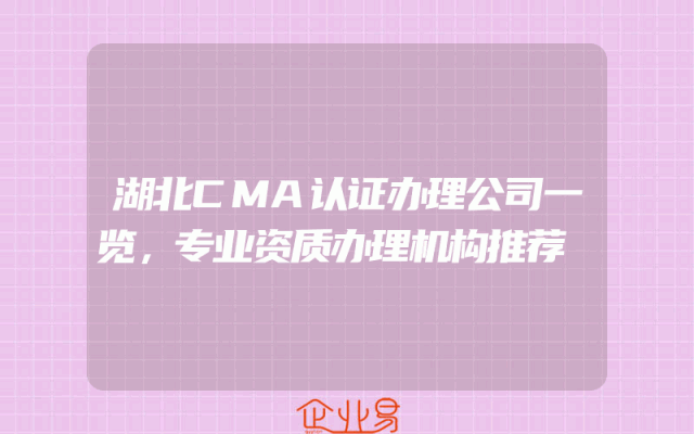- 湖北CMA认证办理公司一览,专业资质办理机构推荐