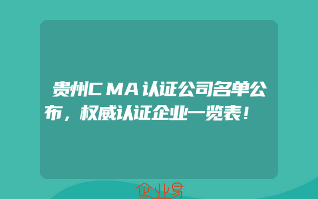 - 贵州CMA认证公司名单公布,权威认证企业一览表!