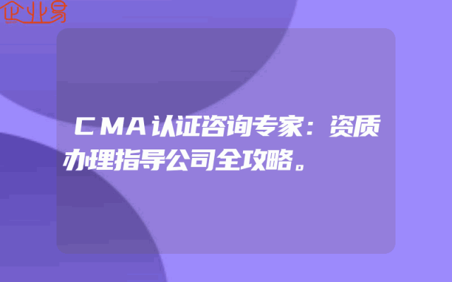 - CMA认证咨询专家:资质办理指导公司全攻略。