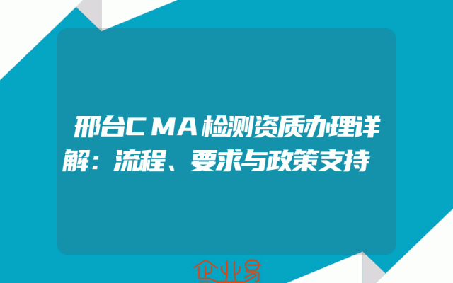 - 邢台CMA检测资质办理详解:流程、要求与政策支持