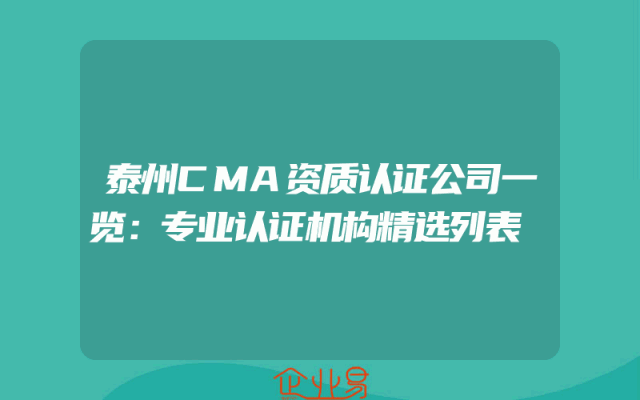 - 泰州CMA资质认证公司一览:专业认证机构精选列表