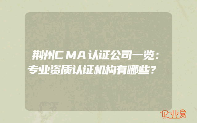 - 荆州CMA认证公司一览:专业资质认证机构有哪些?