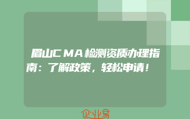 - 眉山CMA检测资质办理指南:了解政策,轻松申请!