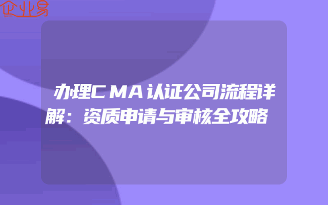 - 办理CMA认证公司流程详解:资质申请与审核全攻略