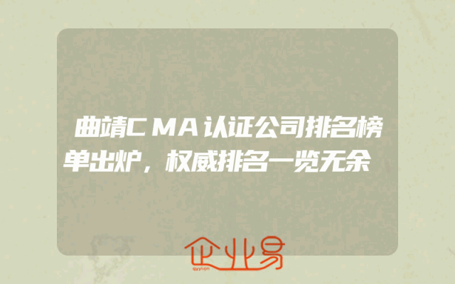 - 曲靖CMA认证公司排名榜单出炉,权威排名一览无余
