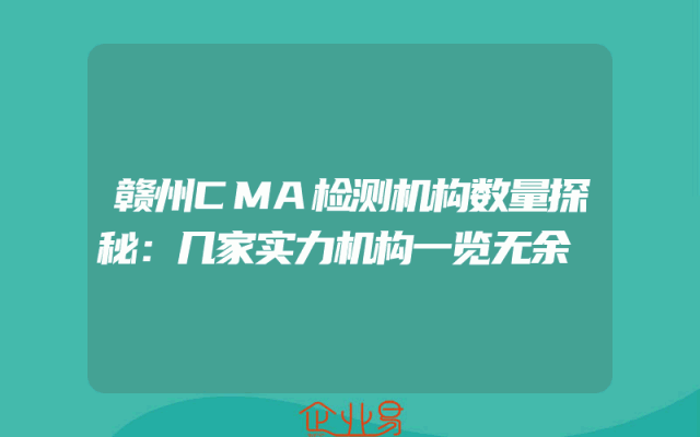 - 赣州CMA检测机构数量探秘:几家实力机构一览无余