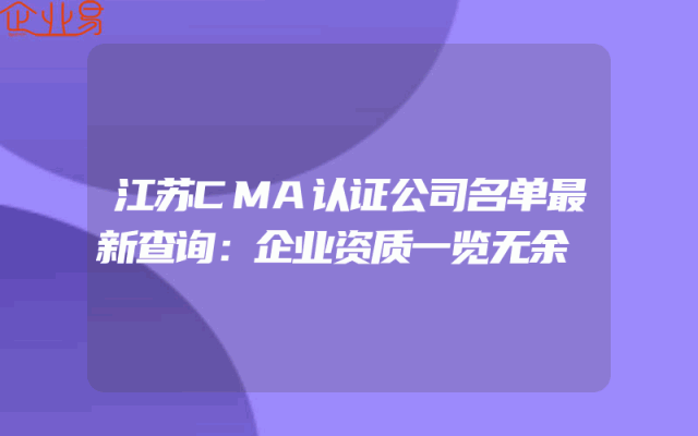 - 江苏CMA认证公司名单最新查询:企业资质一览无余