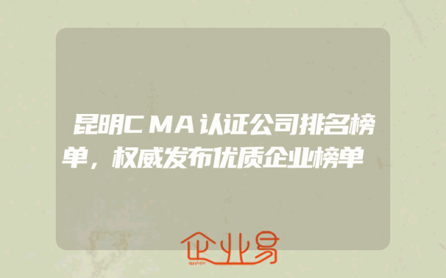 - 昆明CMA认证公司排名榜单,权威发布优质企业榜单