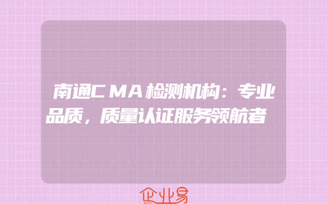 - 南通CMA检测机构:专业品质,质量认证服务领航者