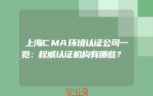 - 上海CMA环境认证公司一览:权威认证机构有哪些?