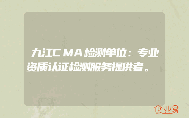 - 九江CMA检测单位:专业资质认证检测服务提供者。