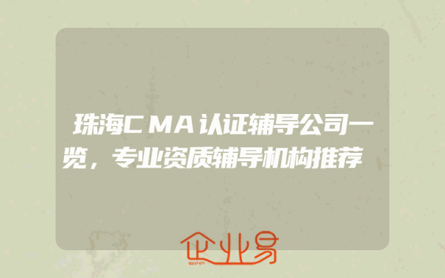 - 珠海CMA认证辅导公司一览,专业资质辅导机构推荐