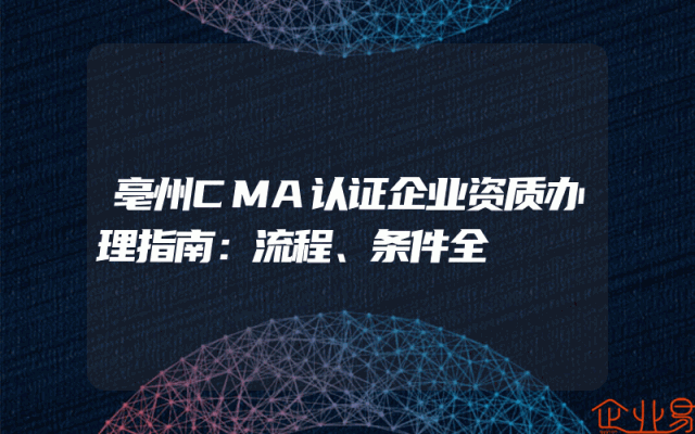 - 亳州CMA认证企业资质办理指南:流程、条件全