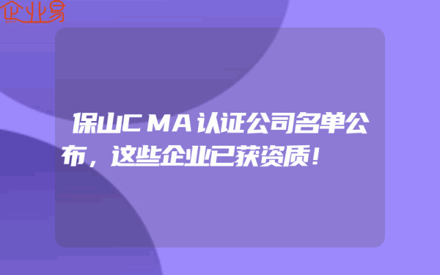 - 保山CMA认证公司名单公布,这些企业已获资质!