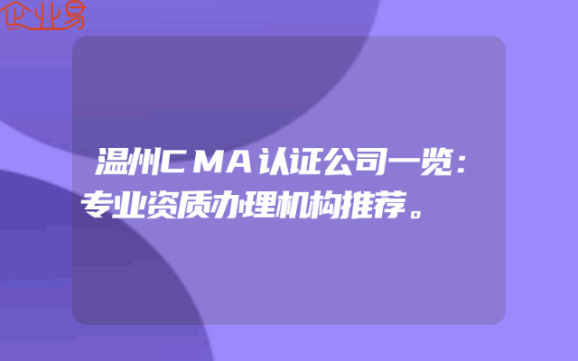 - 温州CMA认证公司一览:专业资质办理机构推荐。