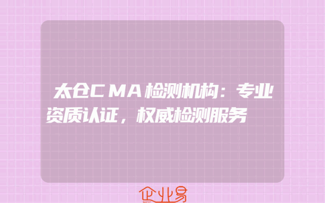 - 太仓CMA检测机构:专业资质认证,权威检测服务