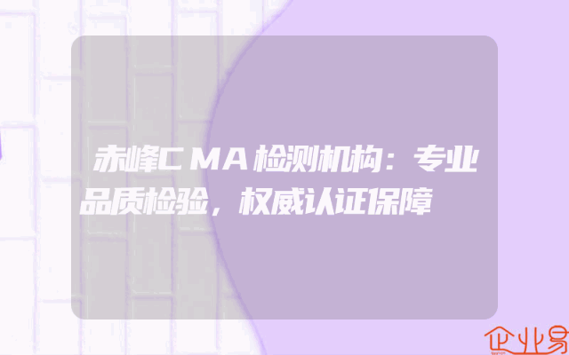 - 赤峰CMA检测机构:专业品质检验,权威认证保障