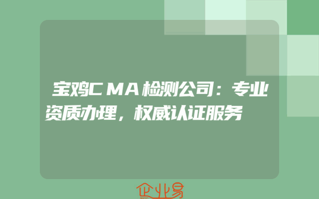 - 宝鸡CMA检测公司:专业资质办理,权威认证服务
