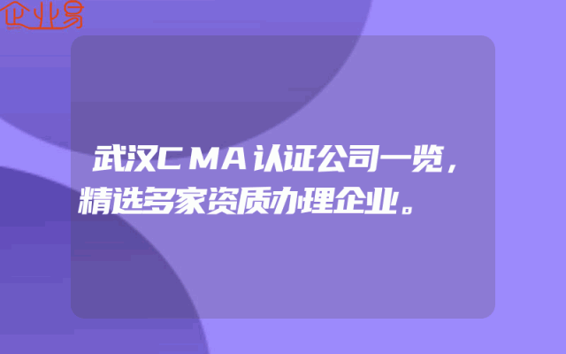 - 武汉CMA认证公司一览,精选多家资质办理企业。