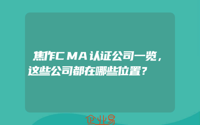 - 焦作CMA认证公司一览,这些公司都在哪些位置?