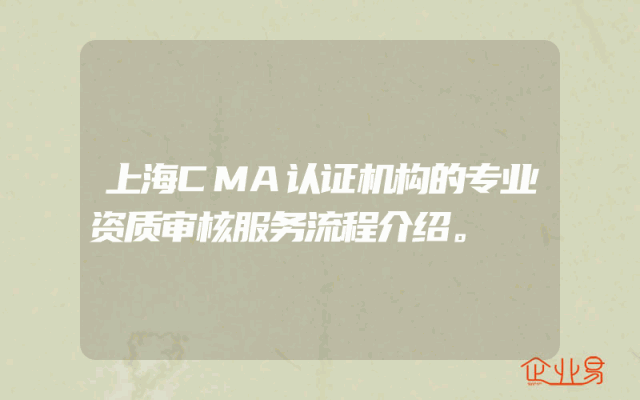 - 上海CMA认证机构的专业资质审核服务流程介绍。