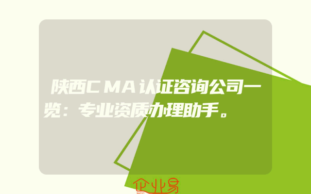 - 陕西CMA认证咨询公司一览:专业资质办理助手。