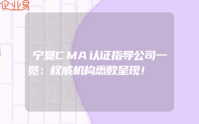- 宁夏CMA认证指导公司一览:权威机构悉数呈现!