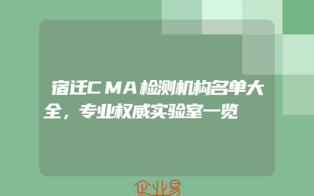- 宿迁CMA检测机构名单大全,专业权威实验室一览