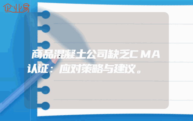 - 商品混凝土公司缺乏CMA认证:应对策略与建议。