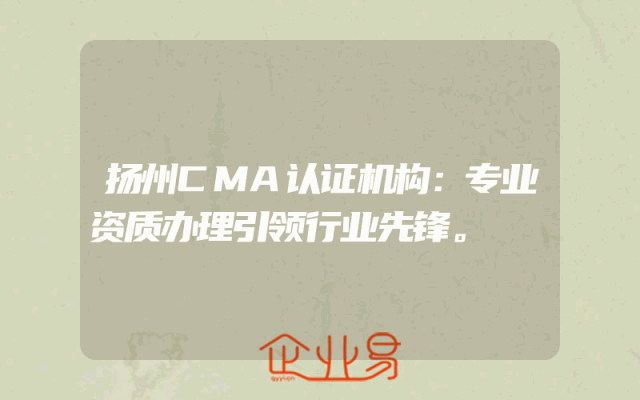 - 扬州CMA认证机构:专业资质办理引领行业先锋。