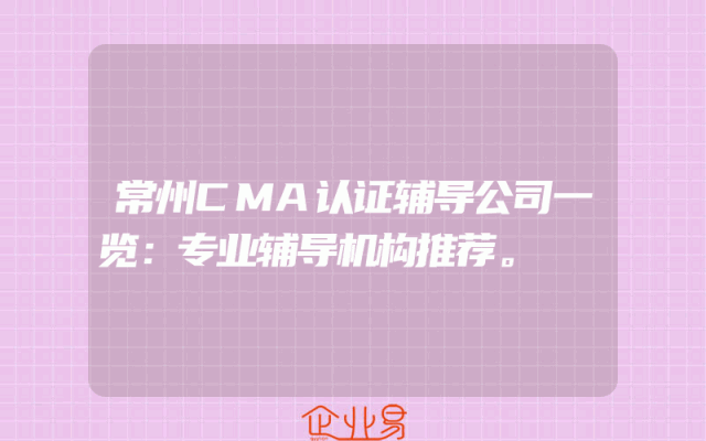 - 常州CMA认证辅导公司一览:专业辅导机构推荐。