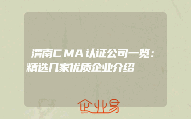 - 渭南CMA认证公司一览:精选几家优质企业介绍